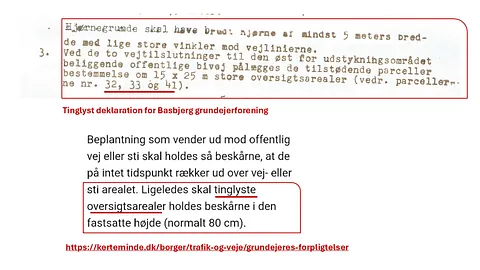 Lokale regler om oversigtsforhold og parkering findes i den tinglyste
